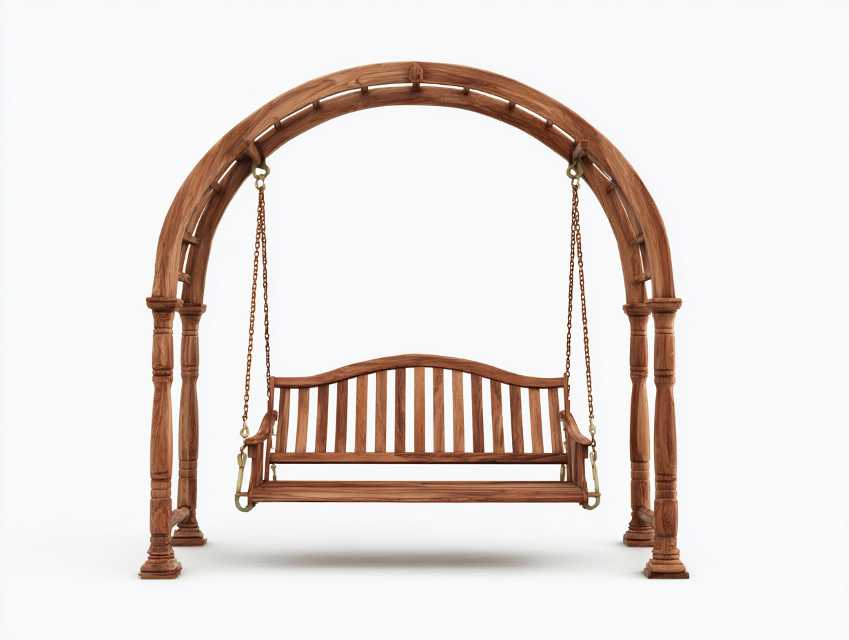This garden swing seat provides a relaxing outdoor seating solution designed for gardens courtyards and outdoor leisure areas. The arched frame structure creates a balanced and decorative presence while supporting comfortable swinging motion.